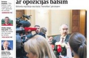 А газета Latvijas Avīze пишет о перевыборах главы Верховного суда, а на третьей странице евродепутат Инесе Вайдере требует от правительства обеспечить чтобы миграционная политика ЕС не поставила под угрозу существование нашей страны. А комментатор Улдис Шмитс пугает русскими танками. Далее рассказывают о прошедшей в Военном музее конференции «Образование национальных организаций во время Перовой мировой войны». В номере есть большое интервью с Государственным контролёром Элитой Круминей. На актуальную тему разбазаривания денег, выделенных на президентство Латвии в ЕС, и не только.