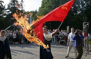 «10 лет назад сожгли флаг СССР около посольства России. Нас за это хотели судить, но справедливость восторжествовала».
