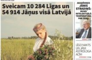 А газета Latvijas Avīze рассказывает о жизни пивовара, возродившего эль и том, что пенсионеры на время успокоились компромиссным вариантом, предложенным Сеймом. На второй странице зарубежные латыши рассказывают как они там празднуют Лиго. На третьей странице художник изобразил горящего на яновом костре главу Света по электронным СМИ, который рассердил всех своей некомпетентностью и незнанием , как пишет газета. Далее сообщают, что в Брюсселе вчера начался европейский праздник латышской культуры и рассказывают о прощании президента Берзиньша с Сеймом. А на развороте пишут о нашествии литовцев, угрожающих культурному пространству Ницы и Руцавы. Потому что у них своего морского берега мало, вот они и зарятся на наш, пишет газета. Корреспондент провёл в тех края двое суток и убедился, что литовцы всё-таки угрожают латышскому культурному пространству меньше, чем русские в Юрмале или Латгалии. В рубрике «Здоровье» - о последствиях длительного пребывания на солнце. А на последней странице - карикатуры на праздничную тему.
