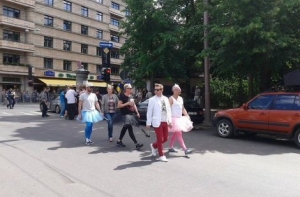 Также, по словам корреспондента радио Baltkom, на двух мужчинах были одеты розовая и голубая пачки, как у балерин. В свою очередь, большинство участников шествия были одеты в повседневную одежду.