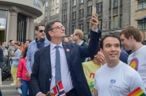 Во главе колонны шествия секс-меньшинств шли высокопоставленные лица из посольства США в Латвии, которое является патроном Европрайда. Также в шествии приняли участие некоторые из латвийских политиков - депутаты Сейма от партии «Единство» Илзе Винькеле, Лолита Чигане, Вейко Сполитис, а также советник главы МИД Виктор Макаров.