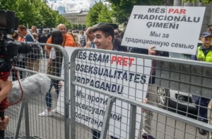 По наблюдениям журналистов, у Памятника Свободы собралось несколько человек, не поддерживающих это мероприятие. У одного из них в руках был латвийский флаг и плакат с надписью «Мы против пропаганды гомосексуализма».
