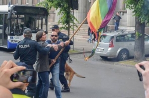 Один из противников Европрайда у здания Верховного суда сжег радужный флаг, который является символом ЛГБТ-общества, сообщают очевидцы. Мужчина был задержан полицией.