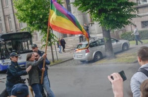 ЧП произошло в завершении шествия секс-меньшинств, когда колонна участников прибыла к конечной цели пути - к Верманскому саду.