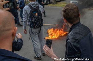 По словам корреспондента радио Baltkom, мужчина примерно 40 лет, являющийся гражданином Латвии, совершил сожжение радужного флага на глазах участников, чтобы выразить свой протест против «глобальной гомосексуализации». Он лично, как отец троих детей, выступает против секс-меньшинств, так как считает, что их цель - легализация однополых браков - это прямой путь к педофилии.