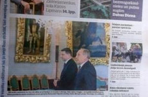 А газета Latvijas Avīze публикует непохожий шарж на президента Вейониса и рассказ о нём. Были опрошены даже соседи нового президента. Отмечается, что у него пока нет пресс-секретаря. На второй странице опрошенные читатели высказываются про нового и прежнего президентов. На второй странице известный журналист Атис Климович пишет, что время работает на украинцев, если, конечно, они стремятся к демократическим ценностям. Хотя правительству Порошенко придётся отвечать на много вызовов, украинцы выстоят, считает автор. Ещё пишут, что новый президент, как и предыдущий, тоже решил не устраивать инаугурационный бал. И в довоенной Латвии такой традиции не было, подчеркивает газета, это Гунтис Улманис в 1996 году ввёл. Ещё в номере есть интервью с евродепутатом Робертом Зиле о ситуации в Греции и прогнозах на будущее. Также пишут, что недалеко от города Екабпилса местный житель встретил медведя. Вот и сходил по ягоды.