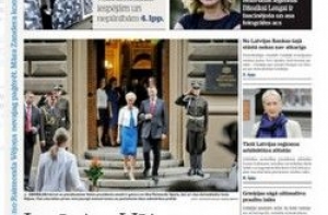 А газета Latvijas Avīze сообщает, что новый президент Вейонис гордится Латвией и её жителями. Публикует речь нового президента в Сейме и рассказывает про его первый рабочий день. На второй страннице опрошенные читатели в основном сочувственно относятся к беженцам, которых собирается принять Латвия. А ещё в номере пишут о подарках бывшему президенту Берзиньшу. Всего он получил 258 подарков, из которых выкупил и забрал с собой только пять, но зато на 7 210 евро. Газета публикует фотографии некоторых даров и сообщает, что самым дорогим из выкупленных Берзиньшем стал афганский ковёр за 4800 евро, подаренный министром иностранных дел ОАЭ. А ещё есть золотая медаль от ватиканского кардинала за 93 416 евро. Тут, очевидно, в газете опечатка. Ну, и о других подарках тоже рассказывают.
