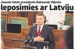 Газета Diena сообщает о начале времени президентства Вейониса. И о том, что президент - это не только вывеска. И ему, и новому министру обороны, нужно себя показать в новой должности. На второй странице комментатор Марис Зандерс отмечает, что президент будет ограничен в пространстве для маневра и поэтому есть вещи, которых от него ждать не стоит. В номере также пишут о росте числа онкологических больных, есть график. Тут всё зависит от семейного врача - как кому повезёт. Также сообщают о необходимости накормить 30 тысяч участников Праздников песни и танца школьников и рассказывают, чем именно их кормят. В рубрике «Экономика» - интервью с президентом Союза архитекторов Гунтой Грикмане, она рассказывает как на архитекторов повлиял кризис строительной отрасли.