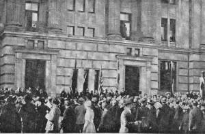 28 июля 1922 года государственный секретарь США Чарльз Эванс Хьюз подписал в Вашингтоне консульскую ноту, тем самым установив дипломатические отношения между Соединенными Штатами Америки и Латвийской Республикой. По этому поводу в Риге состоялись радостные митинги - у посольства США и министерства иностранных дел (на фото).