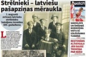 Газета Neatkarīgā пишет о стрелках, как о мериле латышского самосознания. Под заголовком «Праздник армии и народа» - расписание мероприятий 1 августа, когда отмечается их столетие. «Не красные и не белые, а латышские стрелки» - пишет Элита Вейдемане. В интервью историк из Военного музея Илзе Кригера утверждает, то латышские стрелки никогда не охраняли Ленина, а всего лишь несли гарнизонную службу в Смольном. В номере также пишут о планах Национального объединения, об открытии ресторана в «Замке света» и о сортировке строительных отходов.