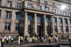 Возле здания Кабинета министров сегодня прошла акция протеста против приема беженцев, организованная обществом «Защитник отечества» в сотрудничестве с национальным союзом «Справедливость», национальным объединением «Visu Latvijai!»-ТБ/ДННЛ и другими организациями. Об этом с места событий сообщил корреспондент радио Baltkom.