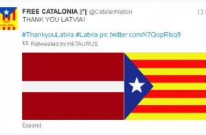 13 сентября 2013 года в интервью каталонскому информационному агентству ACN премьер-министр Валдис Домбровскис заявил, что теоретически Латвия может признать независимость Каталонии от Испании. Хотя оговорился, что сейчас у Риги нет официальной позиции по этому вопросу. «Но если процесс выхода Каталонии будет признан легитимным, я сказал бы, теоретически, почему нет?»- заявил Домбровскис. Это вызвало большой резонанс в Каталонии, каталонцы благодарили за подержку, в том числе и латвийских туристов в Барселоне, в твиттере даже появился специальный тег #ThankYouLatvia. А посол в Мадриде Янис Эйцхманис был вызван для объяснений в МИД Испании. Сам Домбровскис потом говорил, что его слова были тенденциозно истолкованы.