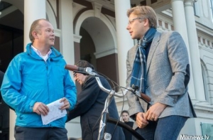 Сегодня председатель Рижской думы Нил Ушаков и посол Нидерландов в Латвии Питер Ян Ланденберг совершили совместную велопрогулку по улицам Риги.