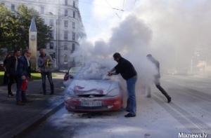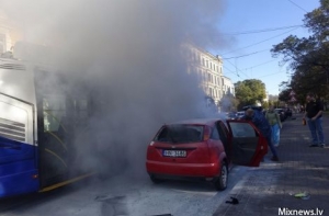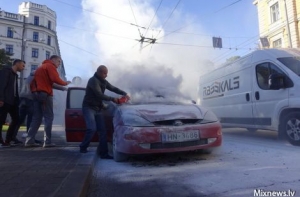 Во вторник, 6 октября, в Риге на перекрестке улицы Кр. Валдемара и бульвара Калпака загорелась красная машина марки Ford. Об этом в интервью радио Baltkom сообщила представитель Государственной пожарно-спасательной службы Виктория Грибусте.