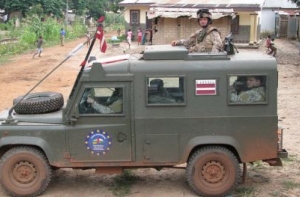 7 октября 2014 года министр обороны Раймондс Вейонис и командующий Национальными вооруженными силами Раймонд Граубе прибыли Центральноафриканскую Республику, чтобы ознакомиться с условиями службы латвийского контингента из 40 солдат, которые участвуют в военной миссии ЕС в этой стране. Однако там начались народные волнения и чиновникам с большим трудом удалось вылететь из охваченной беспорядками столицы ЦАР Банги в Париж. В Ригу они вернулись 13 октября.