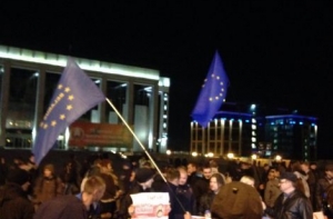К 21:30 толпа пришла на площадь Независимости к зданию Правительства.