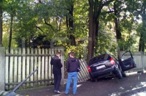 В то же утро в Риге, в Пардаугаве, автомашина Hyundai Tucson протаранила деревянную ограду Ботанического сада ЛУ со стороны ул. Дзирциема.