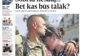 А газета Latvijas Avīze отмечает украинский день защитника отечества. На первой странице - портрет бойца батальона «Айдар». Газета публикует репортаж из Украины экстремального журналиста Атиса Климовичса, который посетил Донбасс вместе с нашим послом Аргитой Даудзе. Встреченные украинцы рассказывали ей, что теперь лучше понимают, что было в 194о году в Латвии. На третьей странице обозреватель Марис Антоневичс привычно пугает не только Москвой, но и ее местными приспешниками, в том числе, некими мужчинами в пиджаках, которые согласовали рижское время с московскими. Но, тем не менее, разгром выставки про лица майдана заставил Госканцелярию задуматься об улучшении охраны здания Кабинета министров, пишет газета. Также пишут о минимальном количестве учеников, необходимом, чтобы школу не закрыли и о ситуации в регионах. И о том, где именно будут храниться те 400 тысяч евро залога, взамен на которые бывшего главу ЛДЗ Магониса отпустили до суда - в Госкассе. Вспоминают и других отпущенных за деньги.