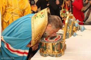В тот же день в рижском кафедральном соборе Рождества Христова прошла встреча святых мощей апостола Андрея Первозванного.
