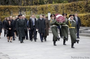 Раймонд Вейонис также возложил венок к памятнику Неизвестному солдату в Киеве, принял участие в церемонии возле Мемориала памяти жертв голодомора и возложил цветы к памятнику «Небесной сотне».