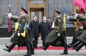Визит президента Латвии начался с официальной церемонии встречи на крыльце перед администрацией президента Украины в Киеве, в котором приняли участие воины почетного караула и прозвучали гимны обеих стран.