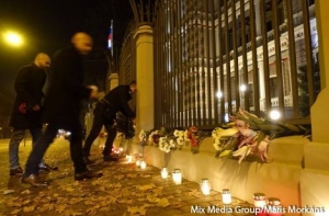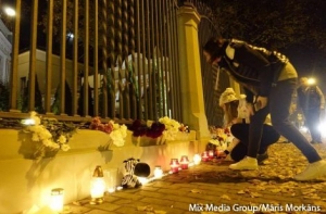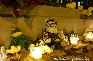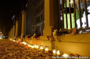 Вплоть до позднего вечера рижане несли цветы и свечи к зданию посольства России в Латвии в связи с крушением российского самолета в Египте, при котором погибли 217 пассажиров и семь членов экипажа. Приносят и игрушки - в авиакатастрофе погибли 25 детей.