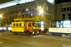 Как порталу Mixnews.lv сообщили очевидцы, в некоторых местах уже образовались транспортные заторы. Наблюдается и скопление трамваев около Национальной оперы.