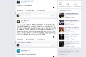 Кроме того, в социальной сети facebook была создана группа #PrayForParis, где пользователи всего мира оставляляют свои соболезнования.