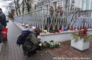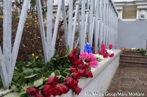 Добавим, что к посольству Франции пришел также мэр Риги Нил Ушаков, он возложил цветы и установил памятную свечу, а также выразил слова поддержки и сочувствия лично послу Франции.