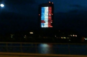 Здание Латвийского телевидения в Риге подсвечено в цвета французского флага.