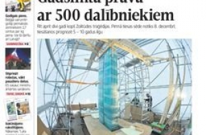 А газета Latvijas Avīze пишет о памятнике на месте рухнувшего торгового центра в Золитуде. О судебных делах. На третьей странице художник Агрис Лиепиньш требует покончить с зависимостью от России, и намекает, что этой страны не будущего. В отличие от ЕС. Также пишут о возврате еврейской собственности и недовольстве этим депутата Рижской думы Кирштейнса. Он указывает, что Еврейская община была основана при советской оккупации приезжими людьми. Ещё пишут о финансировании образования и медицины. А также спорта . И об обещанных забастовках.