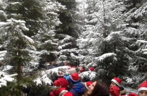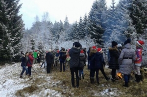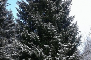 Из четырех елей была выбрана лесная красавица высотой 16 метров. Приблизительный возраст ели составляет 45 лет.