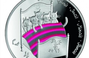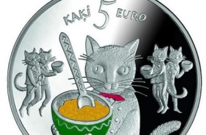 Банк Латвии во вторник, 24 ноября выпустил в обращение серебряную коллекционную монету достоинством 5 евро «Сказочная монета I. Пять котов».