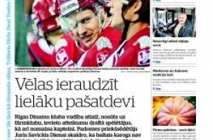 Газета Diena пишет об укреплении хоккейной команды «Динамо» Рига и поисках новых игроков. На второй странице - интервью с одним из адвокатов на процессе по делу о трагедии в Золитуде, и, конечно же, пишут о переговорах по формированию правительства, о разногласиях по этому поводу в правящей коалиции. А также о протестах местных жителей против магазина «Рими» возле Этнографического музея, хотя магазин предполагается построить в этническом стиле. Далее пишут о проблемах некогда знаменитой Булдурской садоводческой школы и о кандидате на звание «Гордость Латвии». Это водитель рижского автобуса Айварс Ципанс. Он не только много лет водит автобус, но 30 лет подряд раз в два месяца сдает кровь, и таким образом спас жизни 370 человек, подсчитала газета.