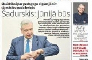 Газета Neatkarīgā пишет о реформе учительских зарплат. К июню всё будет, уверяет министр образования Карлис Шадурскис, вот уже и график разработан. Также сообщают что омбудсмен Янсонс продолжит свою линию, и рассказывают, что для СГД наступили трудные дни. Служба в кризисе, заявила новый министр финансов. А также пишут о борьбе жителей Муцениеки против строительства у них тюрьмы для мигрантов. В номере - большое интервью с министром культуры Даце Мелбарде, перешедшей уже в третье правительство. Она говорит о своих приоритетах.