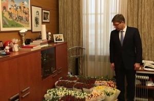 Ранее мэр опубликовал на своей странице в социальной сети Facebook фотографию с охапками тюльпанов всевозможных цветов. Как написал градоначальник, таким образом он подготовился к Международному женскому дню.