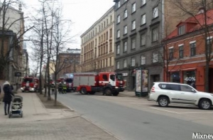Как сообщает корреспондент радио Baltkom с места событий, пожарные машины перекрыли улицу, а рядом с домом стоят машины Государственной полиции и скорой помощи.