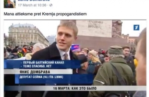 Напомним, ранее депутат Сейма от Нацобъединения Янис Домбрава опубликовал на своих страницах в социальных сетях видео, на котором журналисты Первого Балтийского канала во время мероприятия 16 марта у памятника Свободы пытаются получить его комментарий.