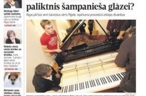 А газета Latvijas Avīze пишет о том, что в Рижском замке будет стоять рояль ценю в сто двадцать шесть тысяч евро. Есть фото как его несут. Задуман как один из центральных элементов Белого зала. « Рояль для музыки или подставка для шампанского?» - спрашивает газета. Обозреватели в рубрике «Мнения» высказываются на тему работы правительства и возвращения всеобщей воинской обязанности. Далее в номере судья Конституционного суда Инета Зиемиеле и глава юридической комиссии Сейма Гайдис Берзиньш рассуждают о несовершенстве латвийских законов, в частности о принципе все что не запрещено, то разрешено, позволяющем митинговать с российскими флагами в поддержку аннексии Крыма. А того, кто это флаг сломал, судили.