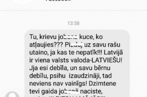 «Ты – русская ё****я су*а, что ты себе позволяешь? Пи**** в свою рашу, если тебе что-то не нравится. В Латвии только один государственный язык – латышский! Если ты - дебилка, и вырастила своего ребенка дебилом и психом – никто не виноват. Родина тебя ждет ё***ая нацистка и расистка! Пи*** домой!», - написала Сандра Карклиня.