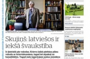Газета Diena публикует большое интервью со знаменитым латышским и советском писателем Зигмундсом Скуиньшем, в связи с его 90-летием. Он рассуждает о о своем вкладе в литературу и вспоминает былое - как был первым латвийским пионером и как служил в легионе. И уверяет, что он - последний Народный писатель Латвии. А также призывает беречь латышский язык. Потом в номере пишут о новой книге, выпущенной Комиссией по исследованию КГБ Латв. ССР. А также сообщают, что министерству финансов удалось найти почти 50 миллионов евро, путем аудита. Об этом заявила министр Рейзниеце-Озола. Кроме того, газета пишет о доходах членов правления «Латтелекома» и сравнивает их с доходами руководителей авиакомпании «Эйр Болтик», за три года. Практически у всех доходы повысились, за исключением председателей правления. Газета указывает, что основания для таких высоких тысячных зарплат неясны, как и область ответственности их получателей.