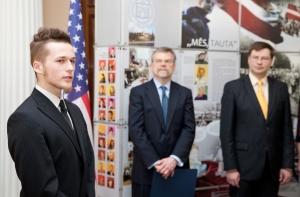 В тот же день премьер-министр Валдис Домбровскис и посол США в Латвии Марк Пекала открыли в здании правительства выставку «Мы, народ», посвященную 25 годам развития Латвии.