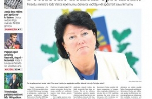 А газета Latvijas Avīze пишет о том, что директор СГД Петерсоне не выдержала давления, но министр финансов просит ее ещё подумать. Далее сообщают, что Уволенный из НВС водолаз Юрис Тимофеевс подал в суд на вооруженные силы. Административный судебный процесс начался вчера в Лиепае. О водолазе газета писала раньше: в 40 лет пережил инсульт, у него отняли допуск к секретной информации НАТО и посчитали что инсульт не связан со службой, лишив пособия и компенсации. На третьей странице Гунарс Нагелс из Австралии оспаривает мнение, что в Латвии остались только те латыши, которым некуда деваться и призывает беречь наследие предков и ненавидеть тех, кто пытается его отнять.
