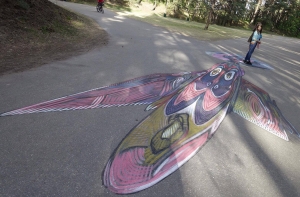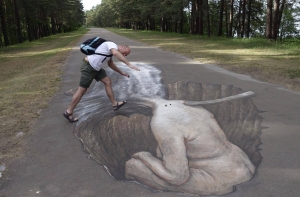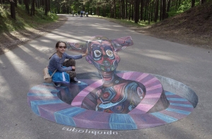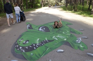Несмотря на то, что международный фестиваль трехмерного художества «Рижские иллюзии» завершился в субботу, 4 июня, картины 3D художников по-прежнему вызывают ажиотаж среди посетителей Межапарка.