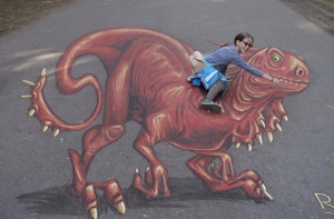 Каждый день посмотреть на большие трехмерные иллюзии на асфальте приходят посмотреть сотни человек.