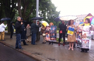 В Риге напротив посольства России в Латвии около 20 человек провели акцию с требованием об уходе российских солдат и военной техники с территории Украины. Мероприятие организовано «Латвийским конгрессом украинцев» и приурочено к 12 июня - Дню России.