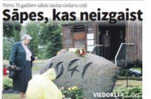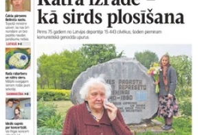 А газета Latvijas Avīze рассказывает о судьбах депортированных и о спектакле на основе их переживаний. На второй странице опрошенные врачи делятся своими надеждами на нового министра здравоохранения. На третьей странице - карикатура на Памятника освободителям Риги, художник связывает договор об охране этого памятника с охраной российских военных пенсионеров, тут же в рубрике «Мнения» привычно пугают российской угрозой. Далее статья про Анду Чакшу и ситуацию в минздраве.