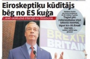 Газета Neatkarīgā предлагает эксклюзивное интервью с главным британским евроскептиком Найджелом Фараджом и сравнивает того с крысой, бегущей с тонущего корабля. А интервью почему-то нет. Также пишут о реформе учительских зарплат и о том, как Нацобъединение тормозит повышение пособий беженцам. Далее архитектор Янис Дрипе рассказывает, что изменится в Риге, когда через неё проляжет железнодорожная магистраль «Рэйл Балтика». Подробнее об этом - в новостях . Также в номере есть интервью с министром финансов Даной Рейзнице-Озолой, о налогах и бюджете. А также о задачах будущего руководителя СГД.