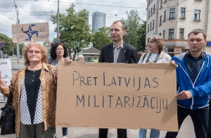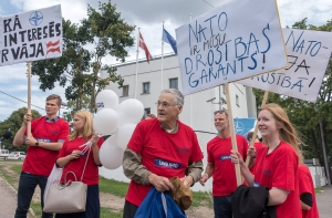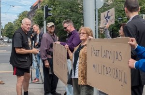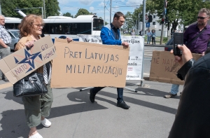 Обе акции начались в 13.00. Пикет «против» усиление военного присутствия НАТО в Латвии, на которую собралось 15 человек, организовало социал-демократическое движение «За независимую Латвию». Представители данного движения считают, что размещать в Латвии военную технику другой страны, рядом с границей России – это угроза для безопасности.