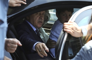 BREAKING: Large crowds greet President Recep Tayyip Erdogan as he emerges from a vehicle at Istanbul's Ataturk Airport.